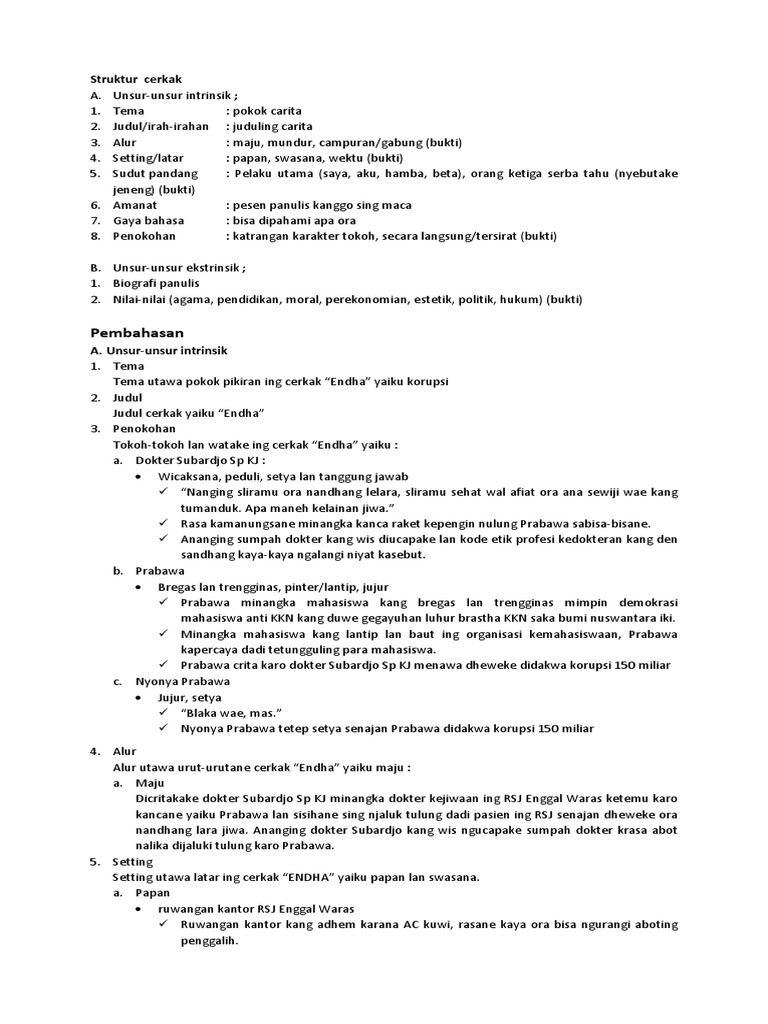 Contoh cerkak bahasa jawa lengkap dengan pembahasan pengertian, unsur intrinsik dan ekstrinsik, contoh kebersihan, pendidikan, sahabat cerkak bahasa jawa pendidikan. Ragam basa jawi wonten ing salebeting naskah sandiwara mata kuliah.
