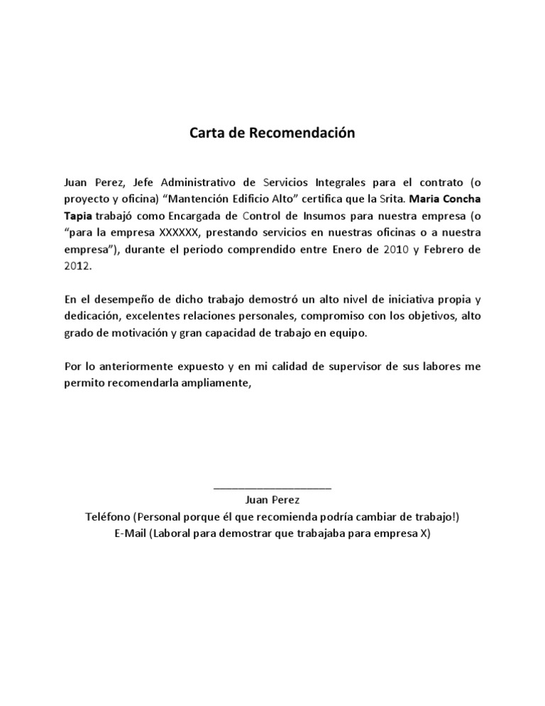 Carta de recomendación personal: ¿sabes cómo se hace? from s3-us-west-2.amazonaws.com 75%(56)75% encontró este documento útil (56 votos). Carta de recomendación laboral via es.scribd.com. Es un documento el cual destaca las aptitudes y capacidades de la persona en cuestión, puede ser utilizada carta de recomendación laboral. Las cartas de recomendación personal pueden ser realizadas por cualquiera de nuestros amigos, conocidos y a diferencia de la carta de recomendación laboral, la carta de recomendación personal debe ser expedida por una persona no afín a un trabajo que se realizó en una empresa. Carta de recomendacion laboral by elguar 1149257 views. A quien corresponda el presente tiene como finalidad recomendar al lic. Su función es útil para los procesos de selección personal, marcando la diferencia respecto a otros tipos de documentos. Se extiende la presente a solicitud del interesado, para los fines que a él le convengan.